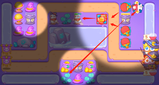 3、打掉下面的道具有免费魔法阵,我们放置飞机,把灯点亮,然后右边这里也放置飞机强化伤害。