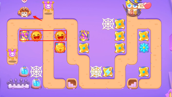 3、许多蜘蛛会使用蜘蛛丝困住炮台,先打掉蜘蛛,再打掉蛛网。