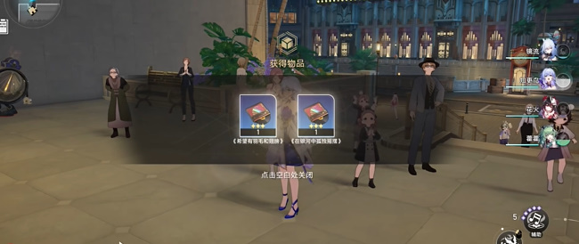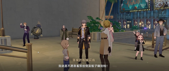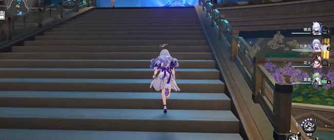 2、传送出来后可以看到一个台阶,走上台阶右转,再走到正方面的台阶,看到皮皮西和智人在讨论知更鸟新专辑。
