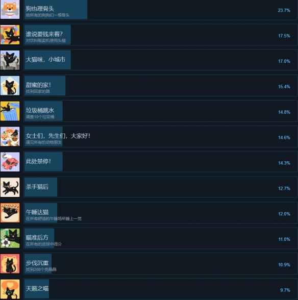 《小猫咪大城市》成就表分享,共有39项成就,包括: