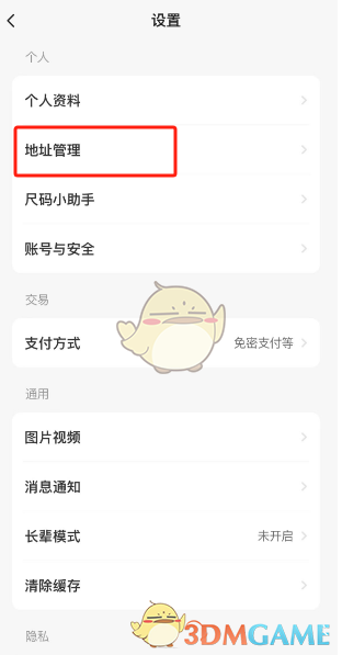 1、首先在闲鱼的设置页面选择“地址管理”。