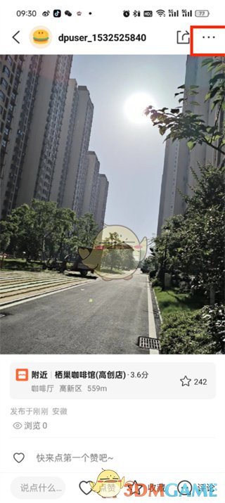 3、进入动态详情页面,点击右上角的【三点图标】;