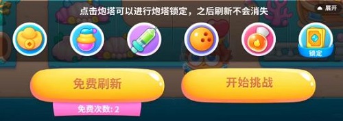 免费刷新有2次,点击炮塔可进行炮塔锁定,刷新后不会消失。