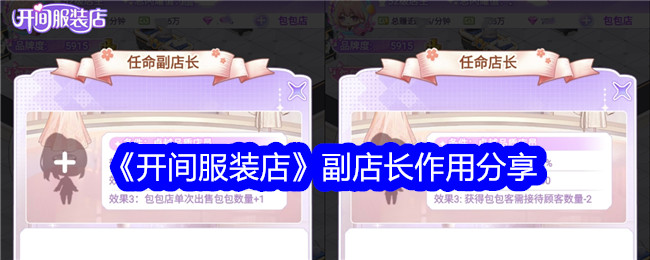 以上就是《开间服装店》副店长的作用分享。想要更多精彩内容,请关注本站!