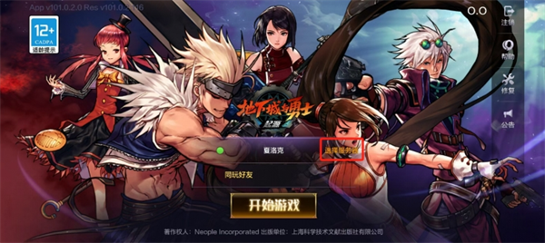 1、打开下载好的地下城与勇士起源手游,完成加载后在登录界面,选择你想要登录的服务区,也就是微信区、QQ区,两个区是分开的;