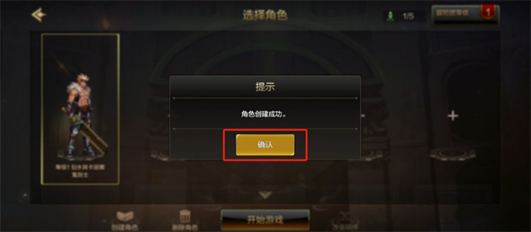 6、角色创建成功后,即可弹出下图提示,点击“确认”即可;