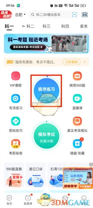 1、首先打开驾考宝典软件,进入到首页中后我们在考试的页面中点击【顺序练习】;
