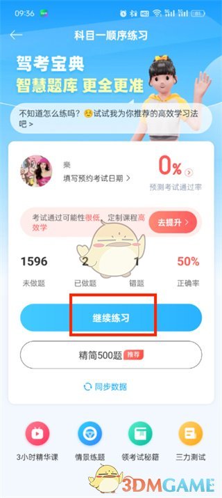 2、然后在顺序练习的页面中我们在这里点击【继续练习】;