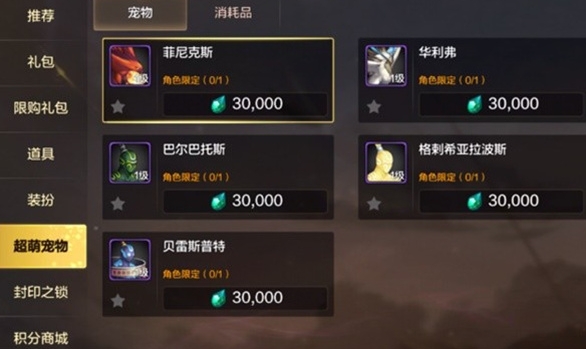 进入游戏商城,可以通过使用点券在宠物界面直接购买。