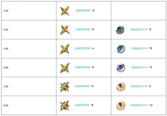 等级:初始 / 20 / 40 / 50 / 60 / 70 / 80 / 90级