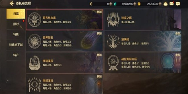 点击主页面右侧的【委托】—【日常】,然后点击【哥布林金库】副本即可进入。