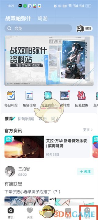 1、打开库街区软件,进入首页,点击右下角的【我的】;