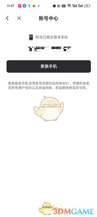5、在账号中心页面中,点击【更换手机】,即可更换绑定的手机号。