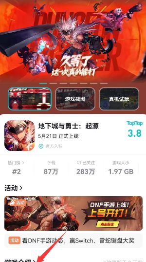 1、首先下载并登录【TAPTAP】,然后找到DNF手游,点击进入详情页。