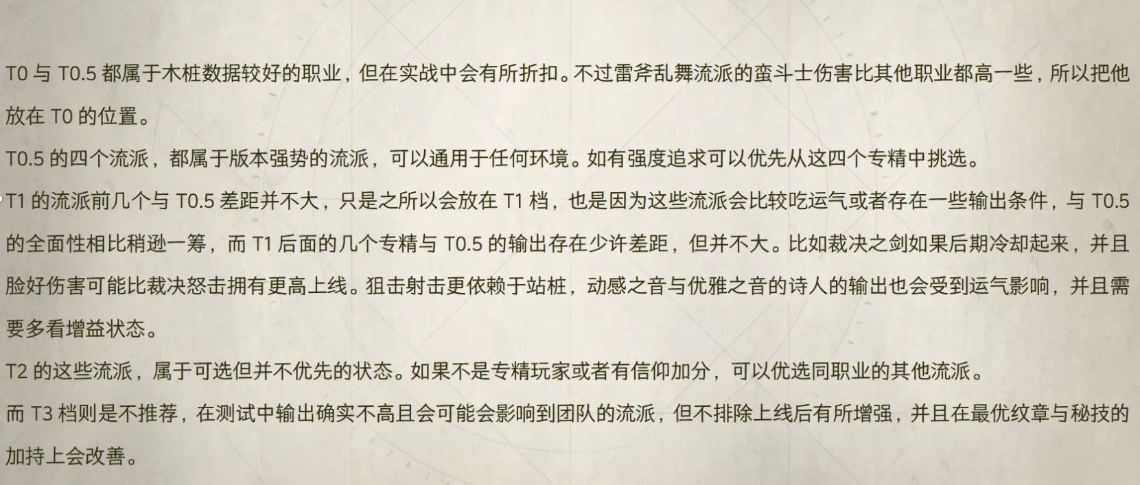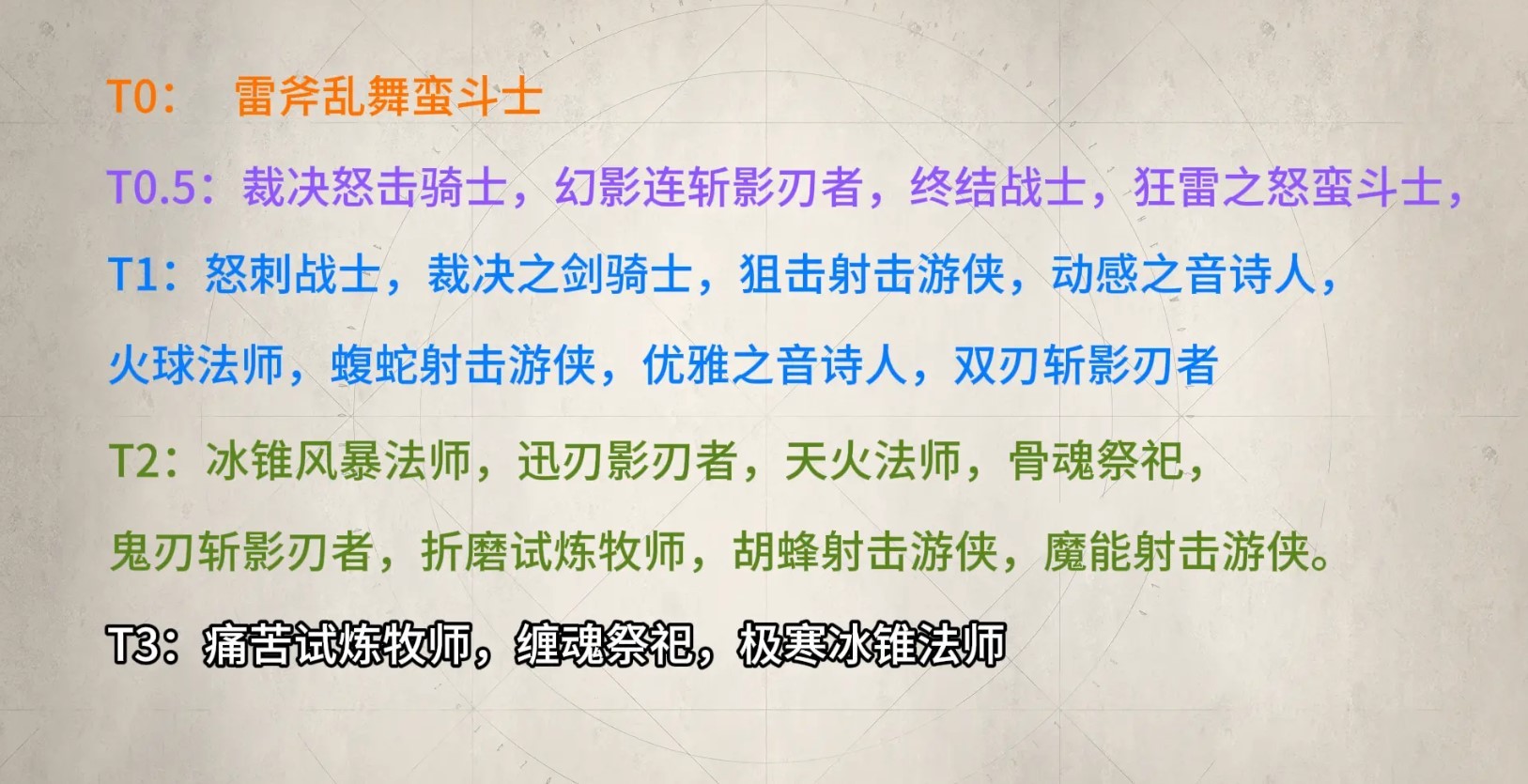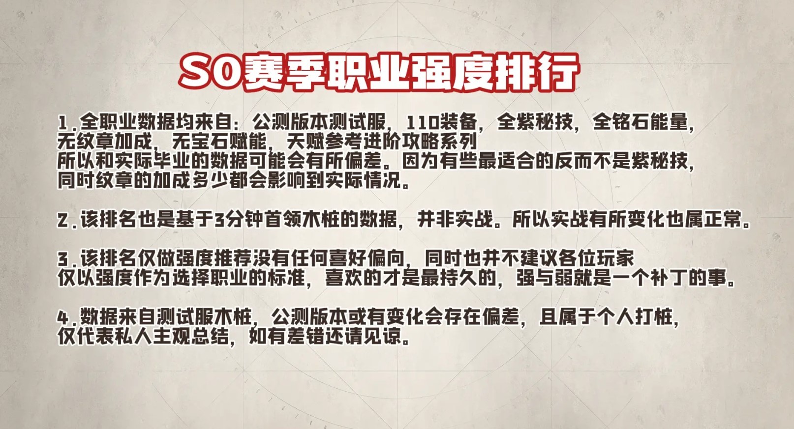 3.该排名仅做强度推荐,没有任何喜好偏向,同时也并不建议各位玩家仅以强度作为选择职业的标准,喜欢的才是最持久的,强与弱就是一个补丁的事。