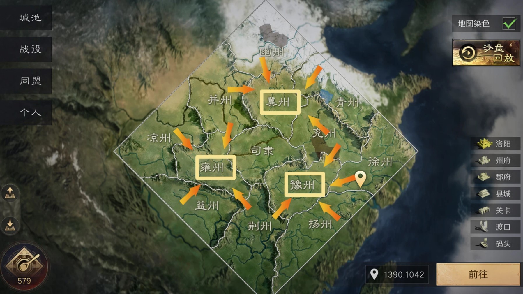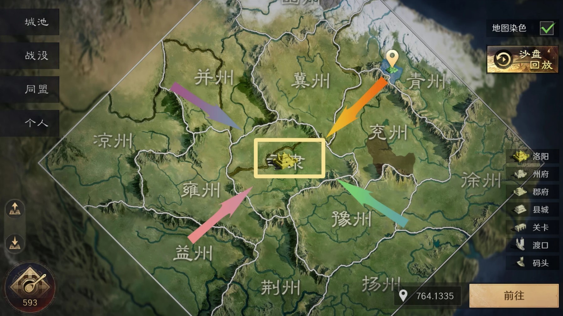 ② 霸业主要的三个阶段:出生州立国——争夺资源州州府及司隶关口——进入司隶争夺洛阳。