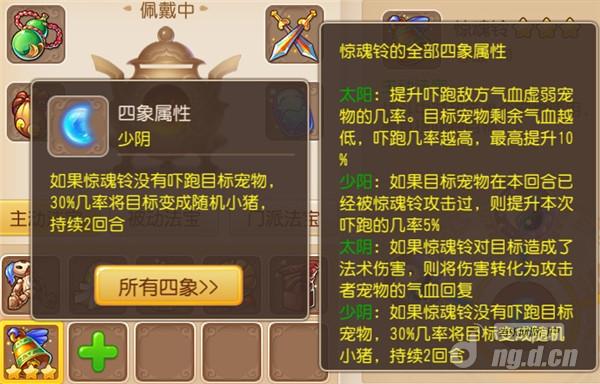 根据自身的应该选择最适合自己的四象属性,能将法宝效果发挥到极致。