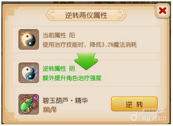 两仪属性能够耗费同名的法宝精华开展反转,反转后,原先为阳的属性会变成阴的属性,原先为阴的属性会变成阳的属性。