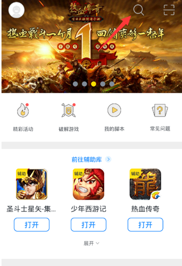 2.开启游戏蜂窝状,进入首页上方搜索按键;