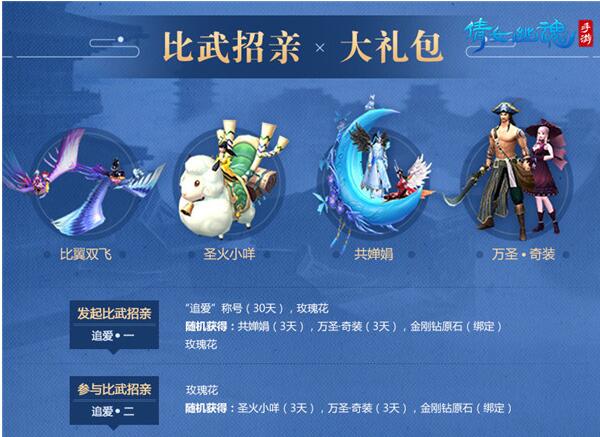 最后游戏玩家若允许与擂主定亲,擂主即可获得游戏道具“情定三生”,喜结连理。