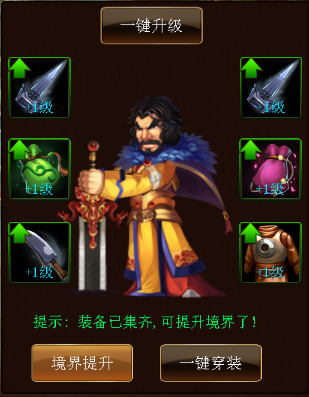 跟随引导,轻轻松松打了第一关,获得几个装备,给导出担当康熙大帝加上小木剑,继续出发,到第三关时儿康熙大帝就能成功升阶了,解锁技能一次进攻能射出去两发弩箭!