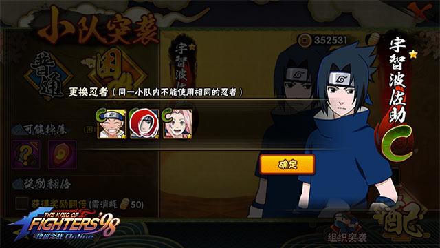 拆换忍者:在游戏桌面点一下小队突袭就可进到小队突袭的页面,在页面点一下角色能够替换成游戏玩家所拥有的忍者。