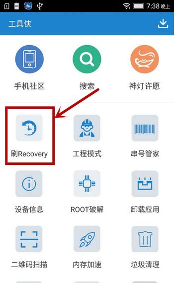 2、组装并开启工具侠,随后点击图标“刷recovery