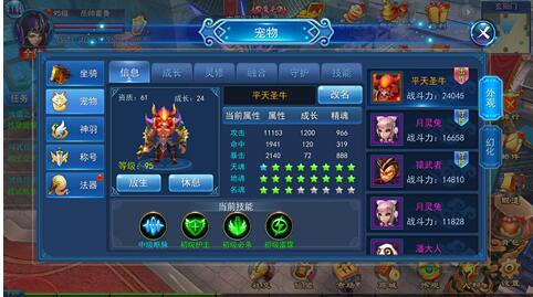 在我们得到第一枚宠物蛋时,仙宠系统也便随之解锁,了解到了宠物信息内容,包含级别、资质证书、发展、炼魂与技能后,大家可以依据爱好开展提升。