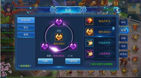 合成系统软件,可以为锻造材料、晶石、小宠物有关的三类道具给予合成服务项目,合成系统软件能够把单数的下属道具合成了更高一级的类似道具。