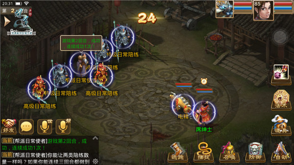 帮派挑战每天都可以挑战2次,一直都是一个循序渐进的过程,需先击败帮派小书童、帮派谋士、帮派婢女,然后就是账房先生,最后就是帮派总教头,对于此事,小编忍不住要调侃,我就是掌门啊,这种不该我的下属吗?