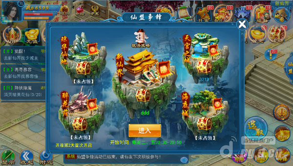 4、 仙盟战结束后,排名前五的仙盟可占领领域