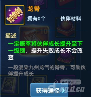 伙伴的评星质量能通过主龙骨开展提升,主龙骨能通过“聚宝盘”产出率。