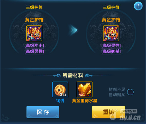比如:2个1技能黄金护符,有概率可生成2个高端技能护符。