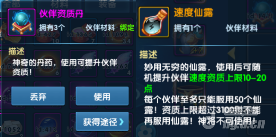 当伙伴洗髓洗出来好一点的资质限制伙伴,现阶段资质标值不太高也不要紧,给伙伴吃资质丹以后可达到限制,特性增大的也是十分多。
