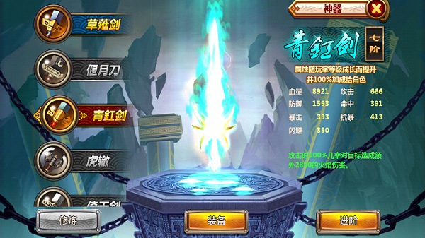 下边,咱们就提早来看看这个圣剑,都有什么攻击特效,随后选择适合自己的属性哦。