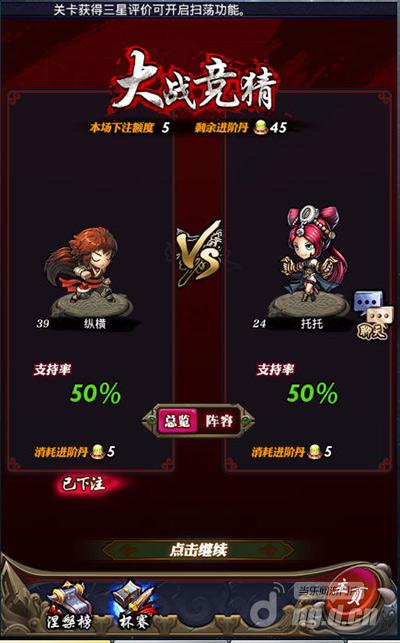 针对没缘8高的玩家,可以从8强后每一轮,竟猜赛事输赢,累计3次竟猜机遇,下注游戏道具升阶丹投给自己看好一点的“种子队”,竟猜恰当可得到二倍奖赏。