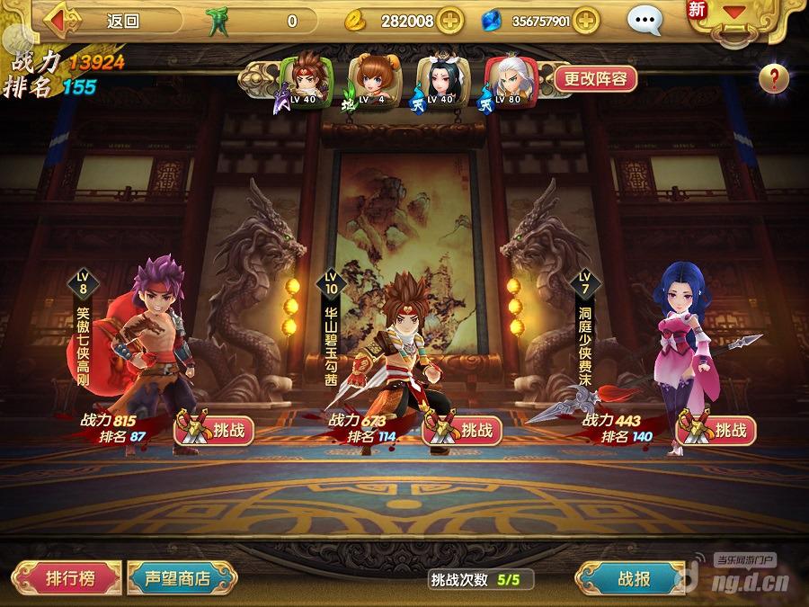在本届华山伦剑中,每个人有5次挑战机遇,挑战获胜后能得到大量裸钻和声望奖励。