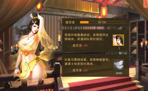 开始游戏第一天,游戏玩家将许昌市封地推完以后,就能开启期盼已久大后宫了。