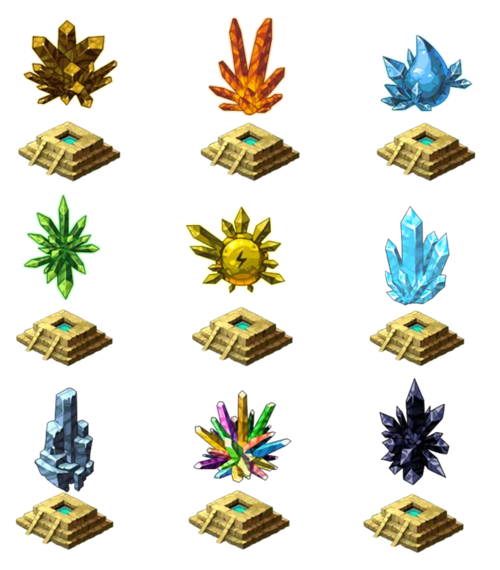 依据龙的属性不一样,生命水晶又被划分成岩土工程、烈焰、水深、绿色植物、雷电、冰霜、钢材、崇高、暗黑九种属性。