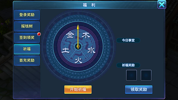 每日两次免费体验祈愿机遇,生肖五行,依据五行的差异组成会获得不同类型的奖励,比如宝藏地图、特性等。