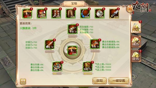 宝物精练优先选择推荐:在精练宝物选择上,首先选择增加攻击强度宝物开展精练,可主要对金属性和火属性宝物精练快速提升攻击抗压强度。