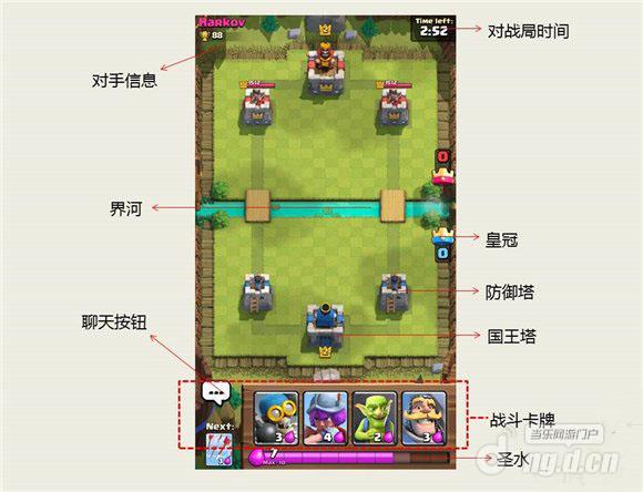 其次卡片作用, 这也是玩家中间对战的关键,能不能获得胜利或获得更多的王冠,全看这种卡牌战斗能力,及其二者之间的配合使用。