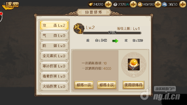 帮会修炼档次的提升必须耗费仙盟奉献和少许白金~