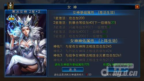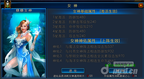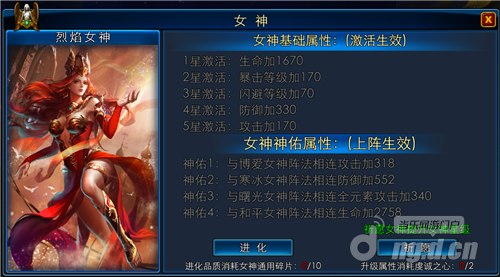 打开所拥有的女神,你就会发现女神给你提升相当多的属性,包含基本属性和神佑复生属性二种。