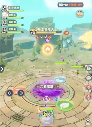 通过左右按钮跑到缺乏的元素区域,6分30秒内依照队伍造成的总伤害来获得奖励。