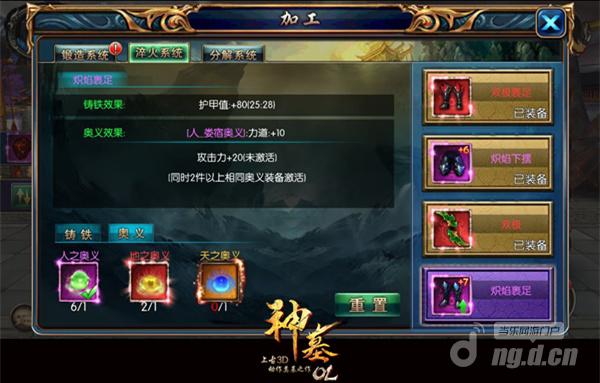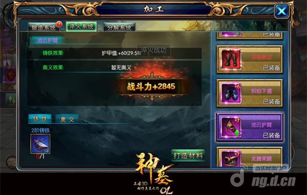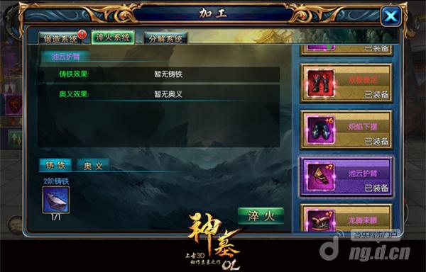 实质上,淬火操作系统是将早已煅造好一点的铸铁和奥义加上在装备上,为装备提升属性,大幅为人物角色提高战斗力。