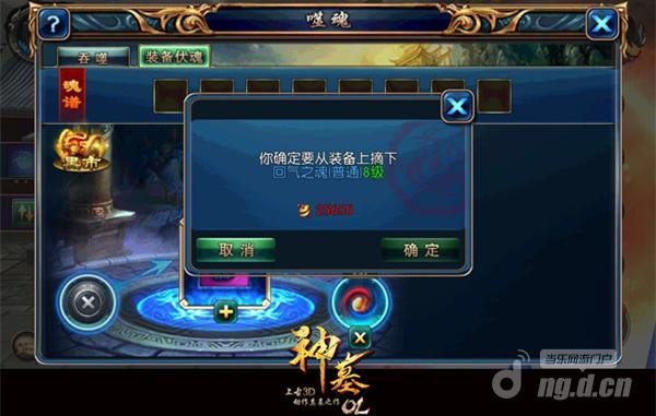 对已嵌入了魂的装备,在分解时系统将提醒游戏玩家先将魂从装备上取下,不然魂能被催毁,游戏玩家必须通过“死灵之咒”系统软件先卸除装备里的魂,后再将装备放进分解系统实现分解就可以。