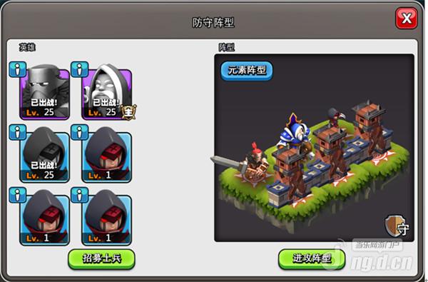 防御阵型:防御阵型仅有英雄上阵,士兵不上阵。