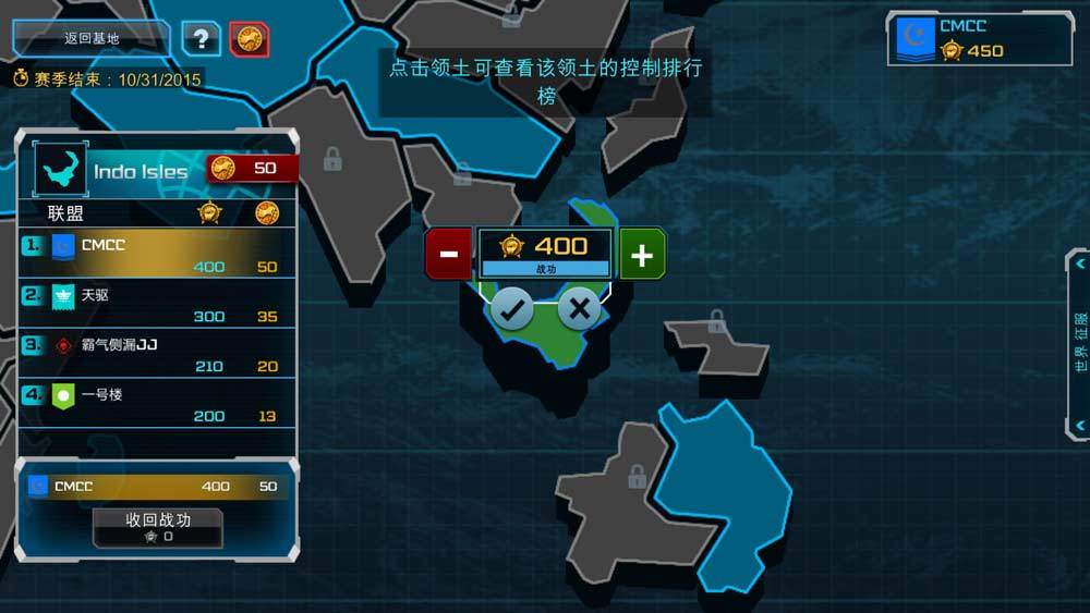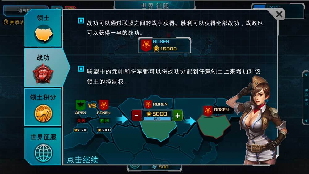 联盟中的大元帅或是大将能将战功安排到随意领地上,来提高对于该领地的管控权。