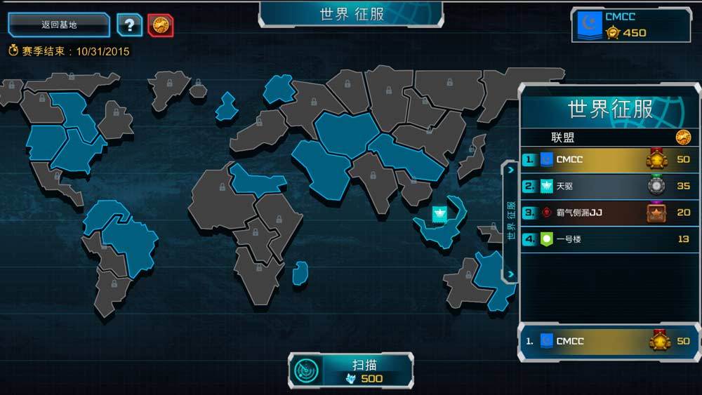 下面的图大家看到的都是世界征服全部页面的全貌了,在其中每一块领地全是相对高度效仿全球地图制作的啦,能够增强现实技术这个世界的画面感~